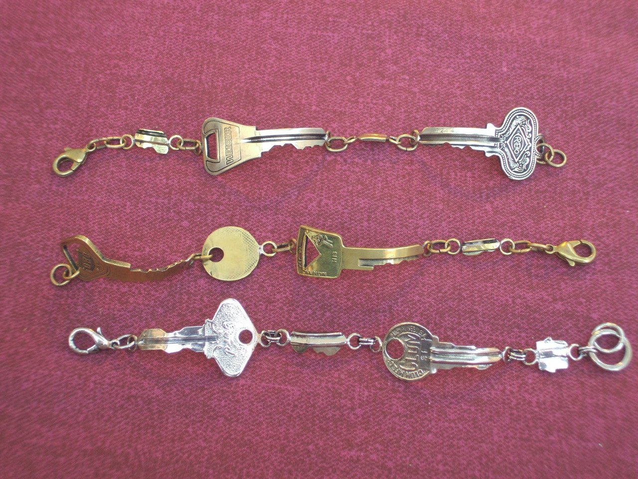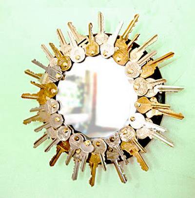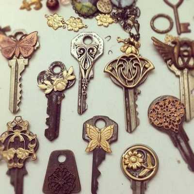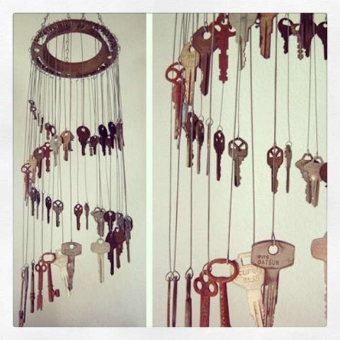 Le chiavi più piccole invece evolversi in graziose decorazioni per cerniere di borse. Se attaccate gli oggetti a un pezzo di stoffa o di spago ottererrete un risultato unico ed originale. Potete anche relizzare piccole applicazioni, come farfalle o fiori, con cartoncino, feltro e/o stoffa.