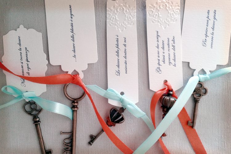 Una tavola elegante e originale? Basta legare le vecchie chiavi ad un laccetto e scrivere l'iniziale di ciascun invitato sul cartoncino.